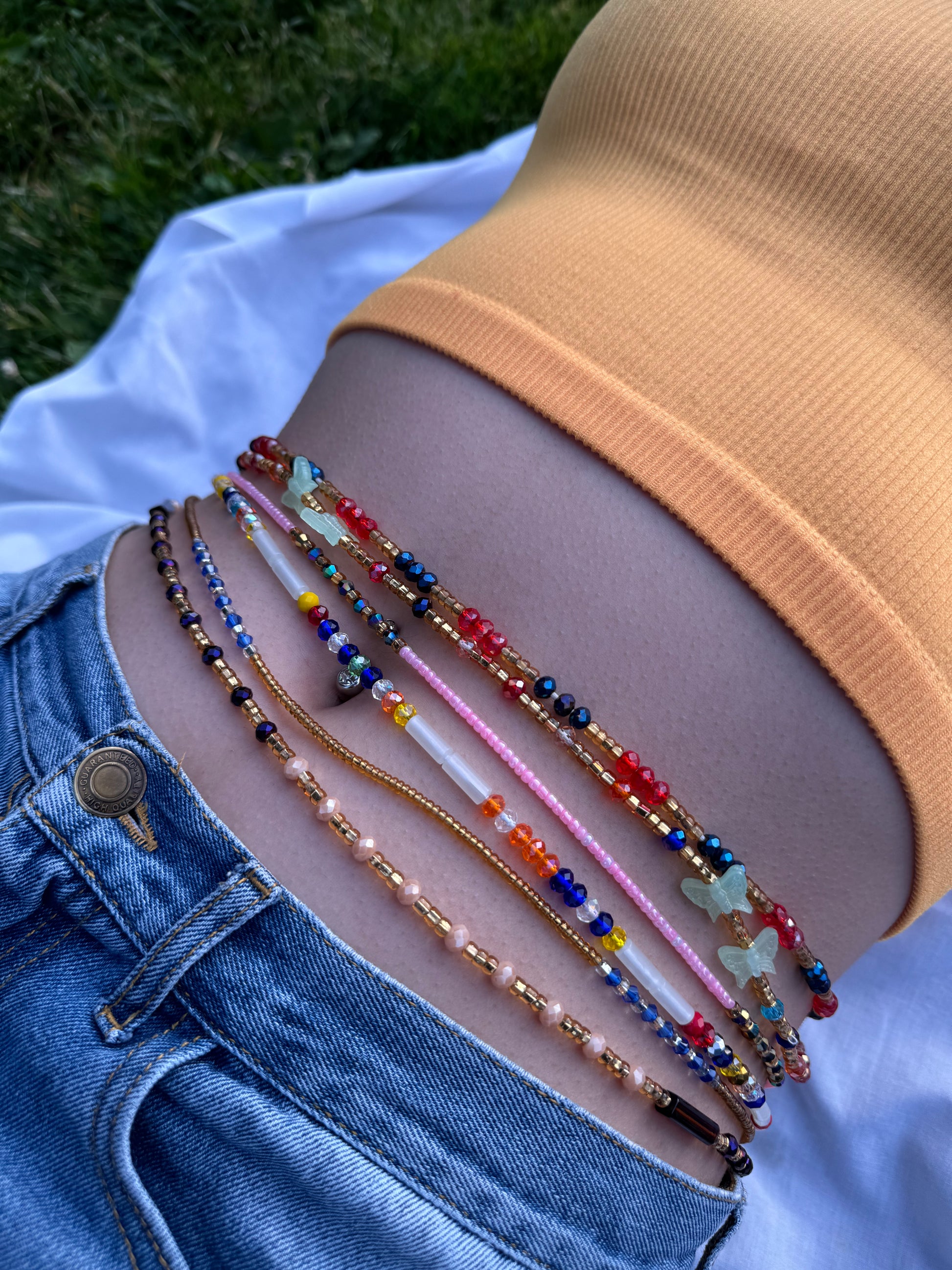 These waist beads are handmade with love and intention, inspired by West African/ Caribbean/Latin tradition and modern feminine energy. Each strand features premium glass beads, crystal accents, and rich gold tones that make your waist shine.